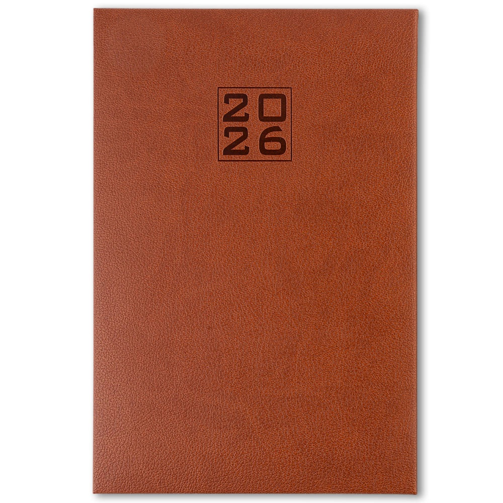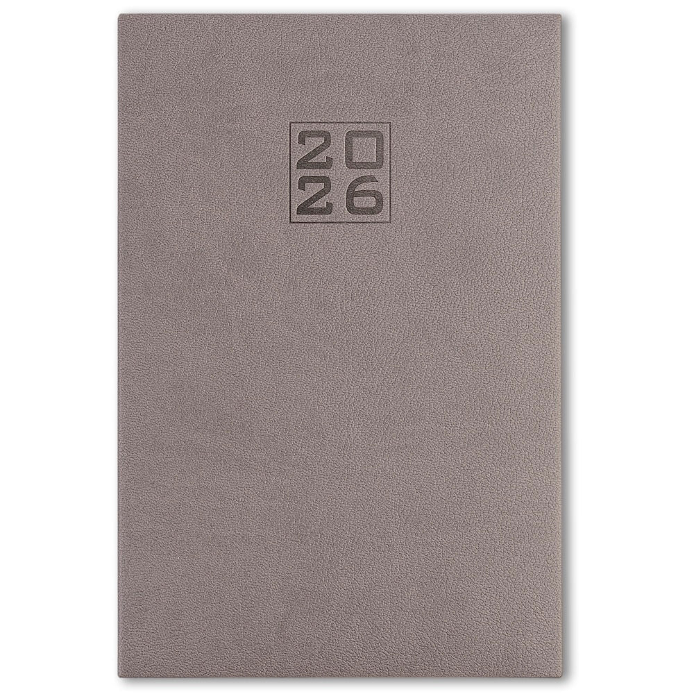 Agenda Omega Semana a la Vista, tapas duras símil cuero, con separador mensual, disponible en gris y marrón a elección