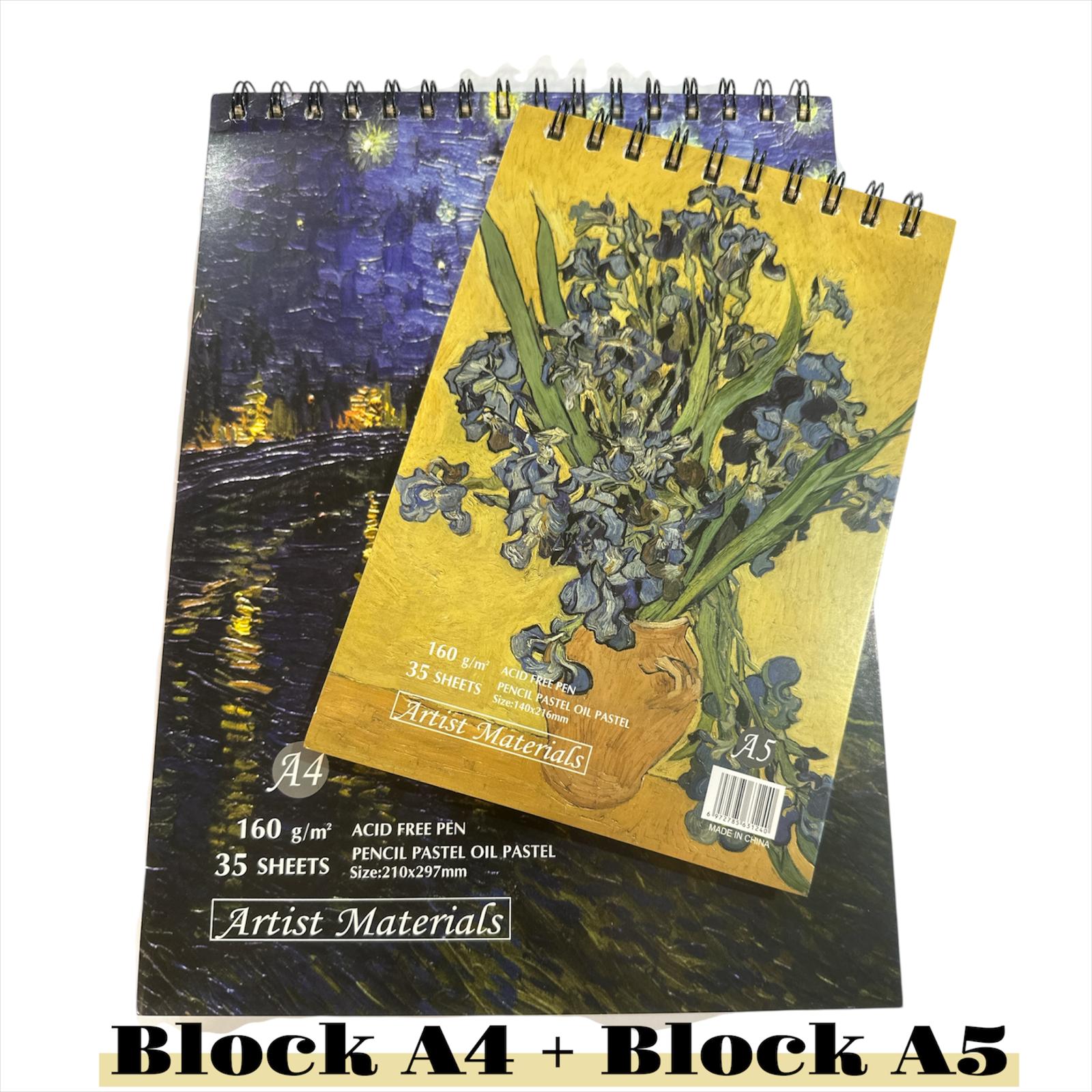 Block de Dibujo A4 + Block de Dibujo A5, hechos con papel de160g, con espiral, 35 hojas cada uno, precio promocional por el conjunto