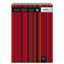Block con espiral de tapa rígida de 80 hojas cuadriculadas, papel ecológico de 75g elaborado a partir de la caña de azúcar. Hojas micropuntilladas y perforadas para archivo.