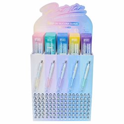 Cambia de color mágicamente: cuerpo perlado que cambia con la luz según el ángulo. Punta metálica con tecnología de doble bola para un trazo más fluido. Lapicera retráctil de gel con tinta negra y trazo de 0,5 mm. Grip de colores (5 colores diferentes) de silicona suave para mejor agarre.