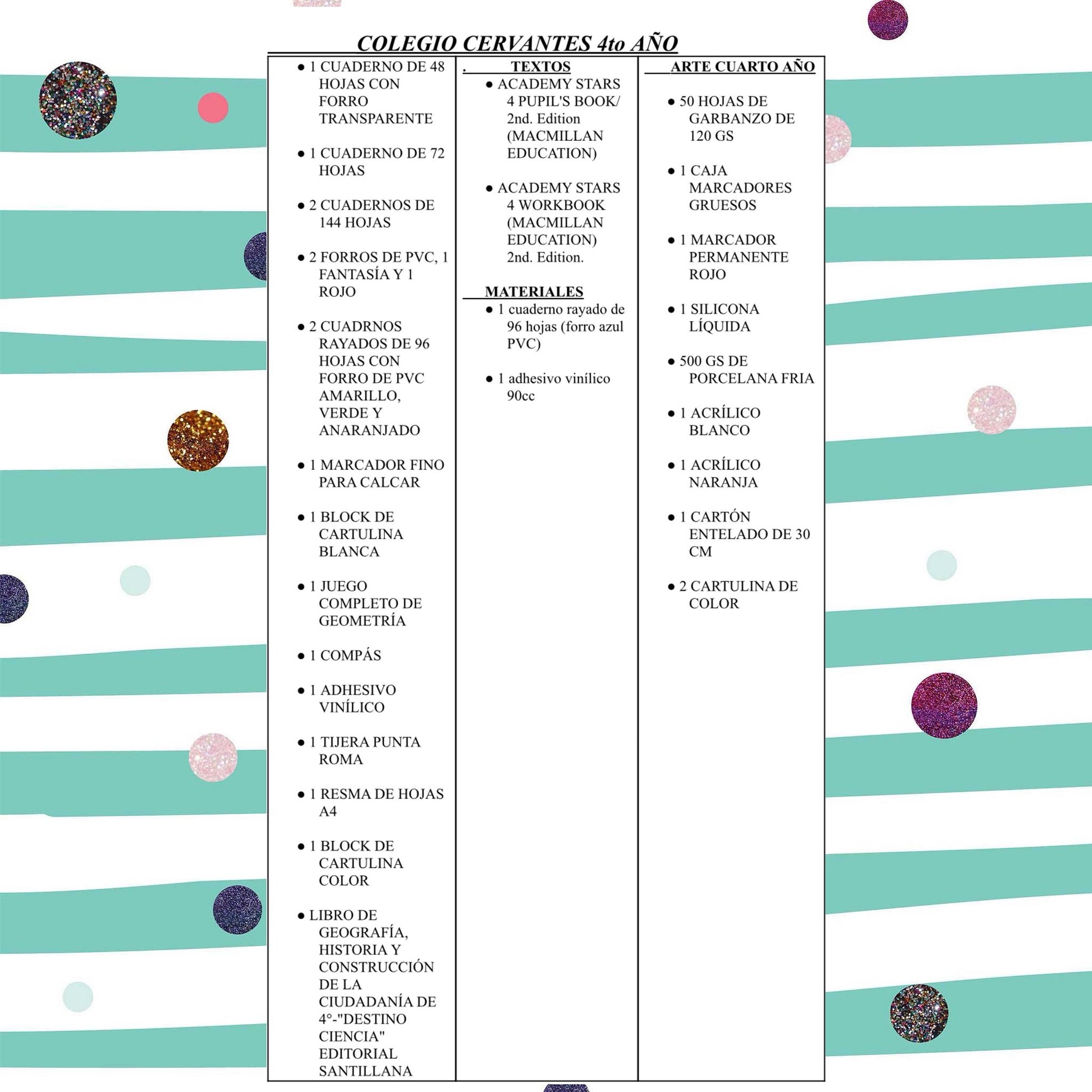 Lista Completa Colegio Cervantes 4º año Español e Inglés 2026