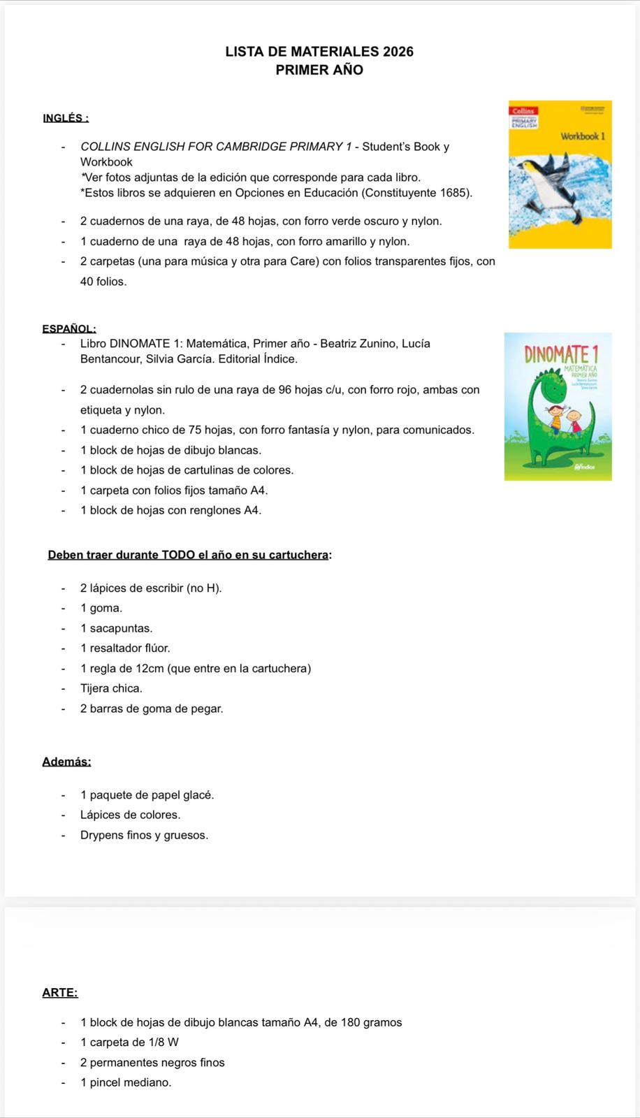 Lista Completa Colegio Ivy Thomas Horneros 1º año 2026