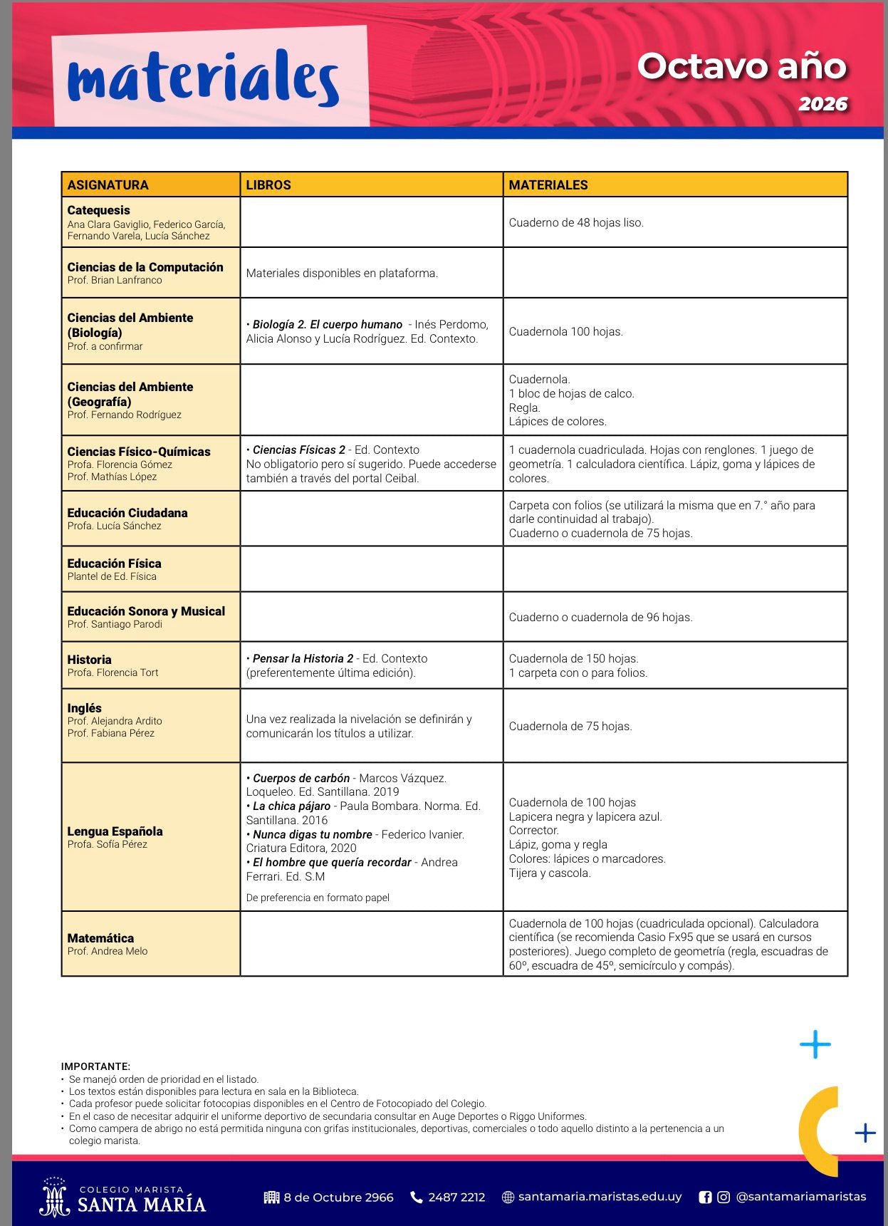 Lista Completa Colegio Maristas 8º año 2026