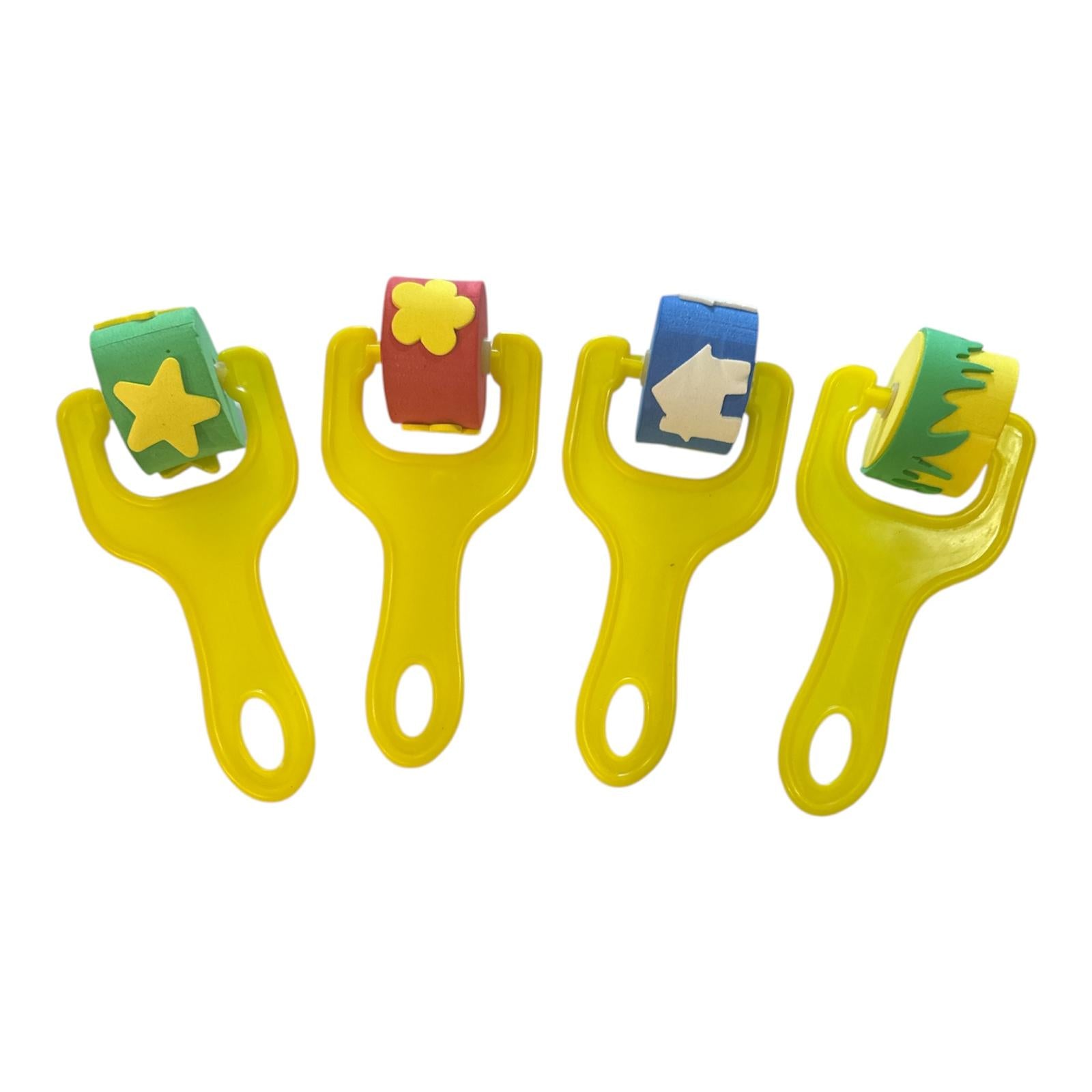 Rodillos Texturados de Goma, paquete con 4 diseños surtidos, medida 2.5cm de ancho, con mango plástico de 13 cm de largo.
